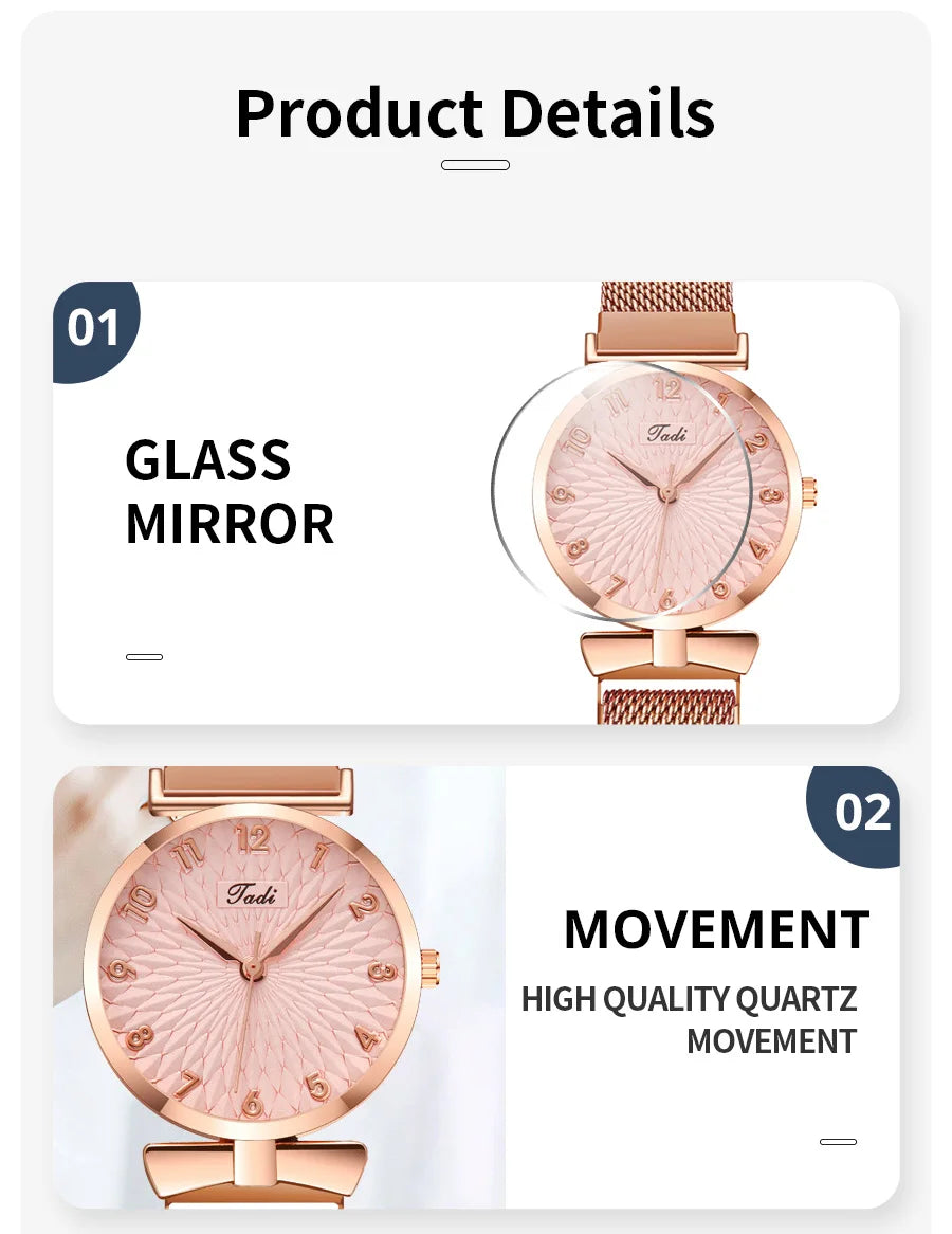 2PCS Set Women's Watch Set Trendy Pink Design Mesh Belt Alloy Wristwatch Fashionable Timepiece Quartz Watch Lady