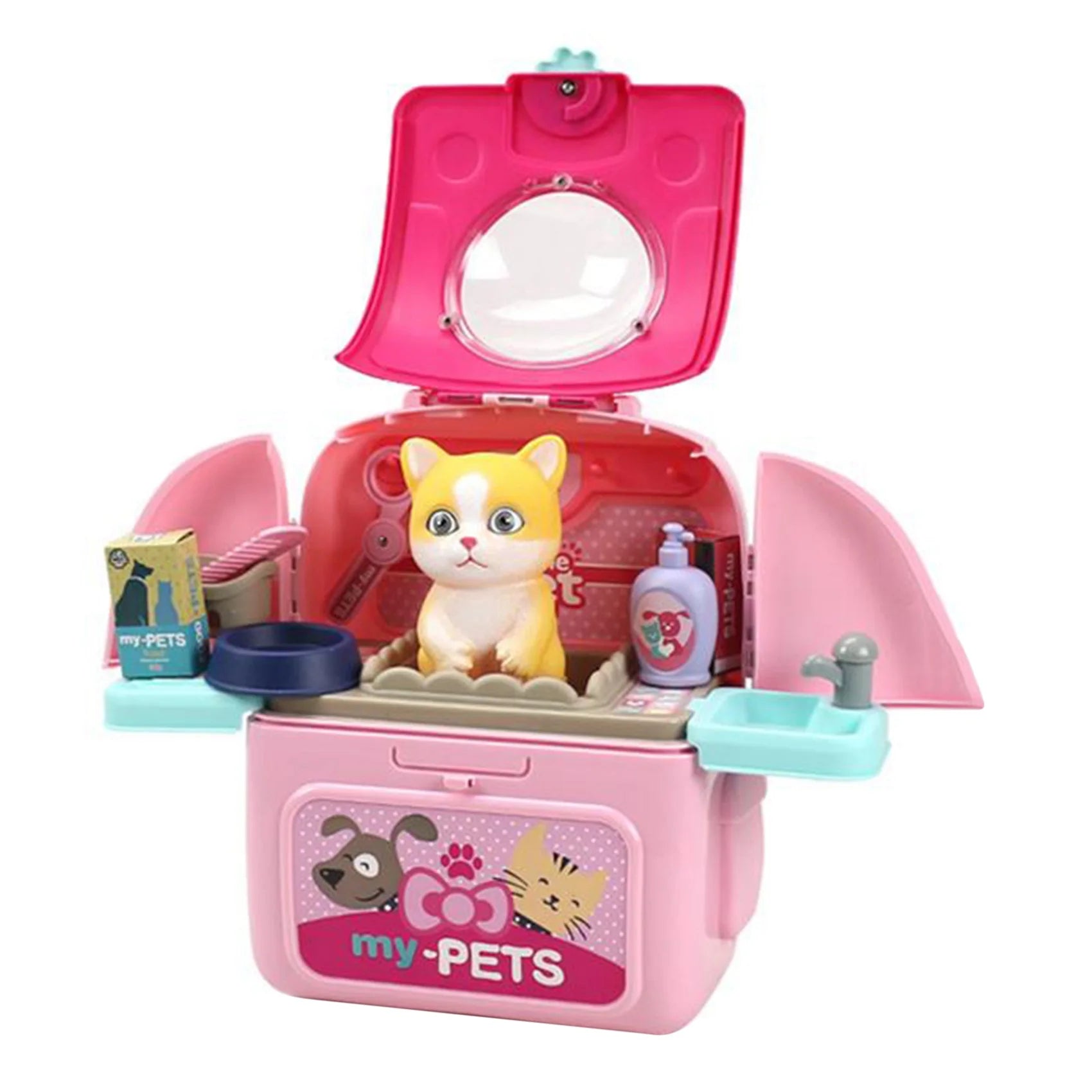 ASDS-Animals Cartoon Pet Toys Realistic Pet Vet Backpack Pretend Play Toy Veterinarian Kit Cat Dog Care Play Set