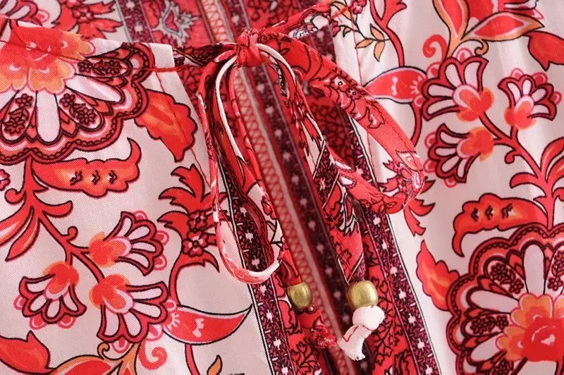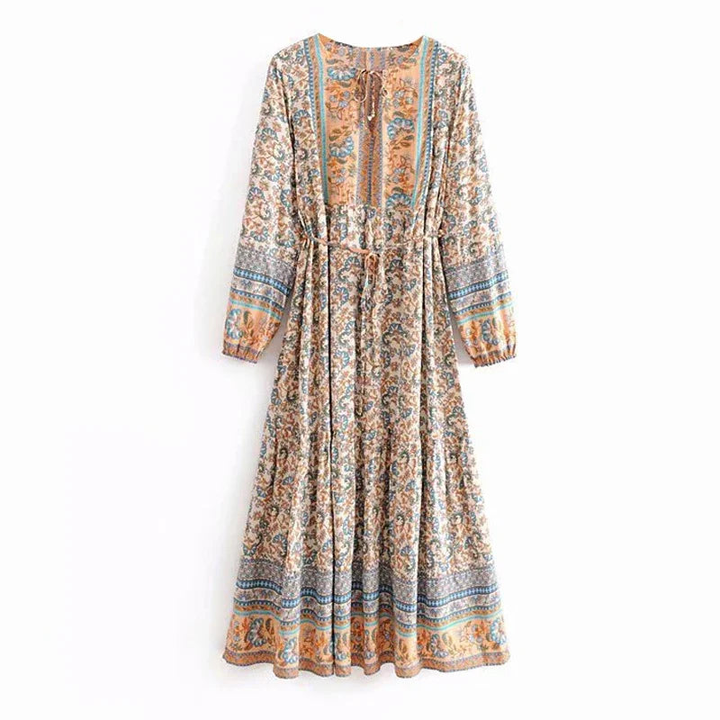 Boho Ethnic long sleeve midi dresses for women Robe vintage floral printed cotton rayon dress Autumn tunic casual Loose vestidos