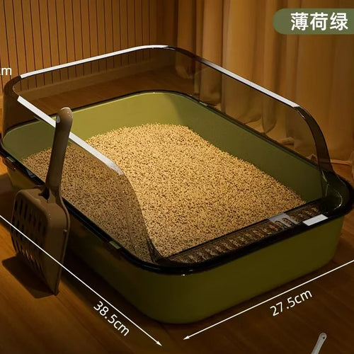Caja de arena abierta para gatos, inodoro grueso para gatos, semicerrado, de lado alto, a prueba de salpicaduras, con cuchara pa