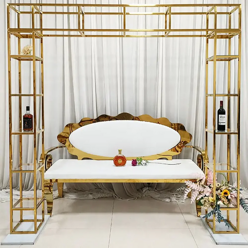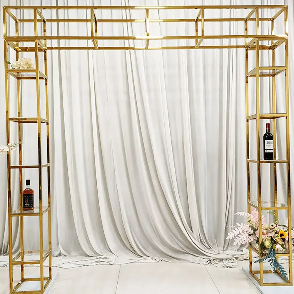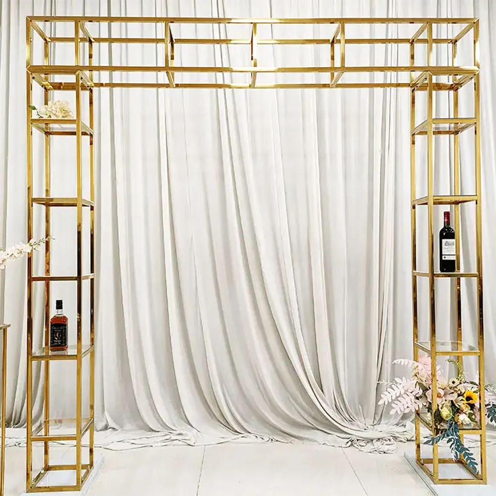 Custom Square Backdrop Stand Gold Metal Wedding Bar Wine Shelf For Event Decoration