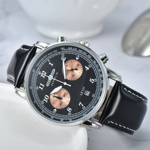 Fashion New Zeppelin Automatic Date Wristwatch Three-eye Run Seconds Multifunctional Timing Business Leisure Quartz Men's Watch