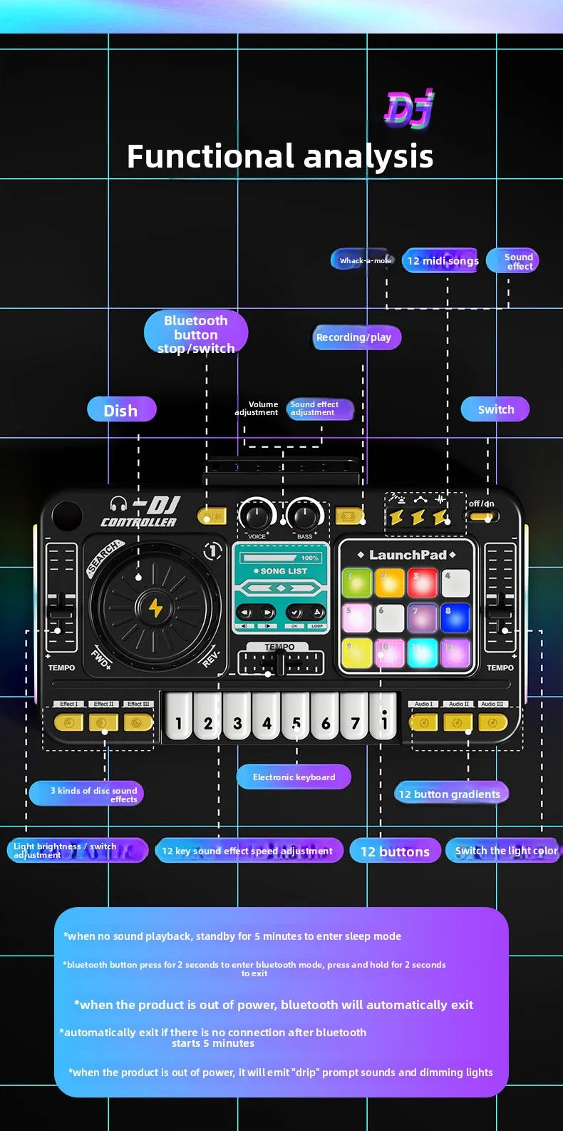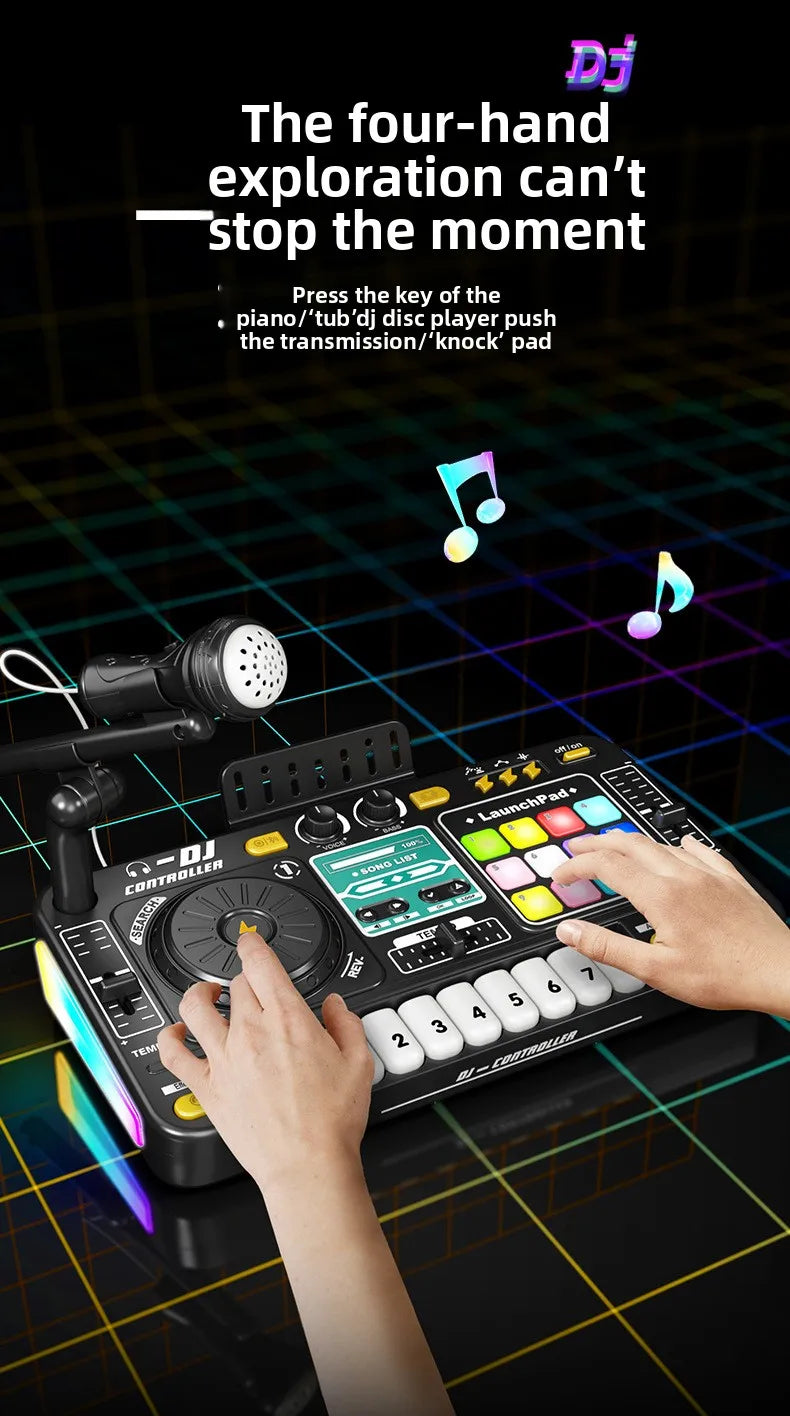 Kid Musical DJ Mixer with Microphone Electronic Keyboard Bluetooth DJ Turntable Console Junior Music Instrument Educational Toy