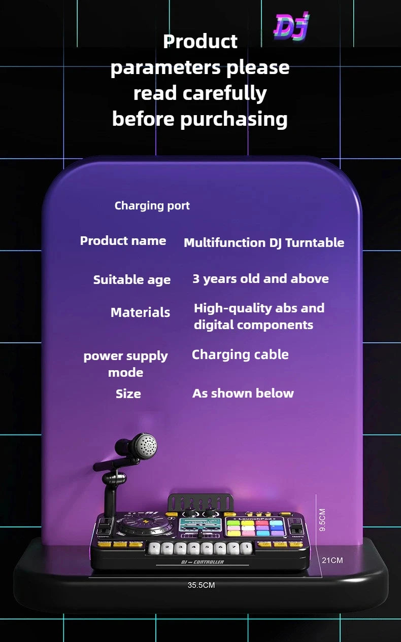 Kid Musical DJ Mixer with Microphone Electronic Keyboard Bluetooth DJ Turntable Console Junior Music Instrument Educational Toy