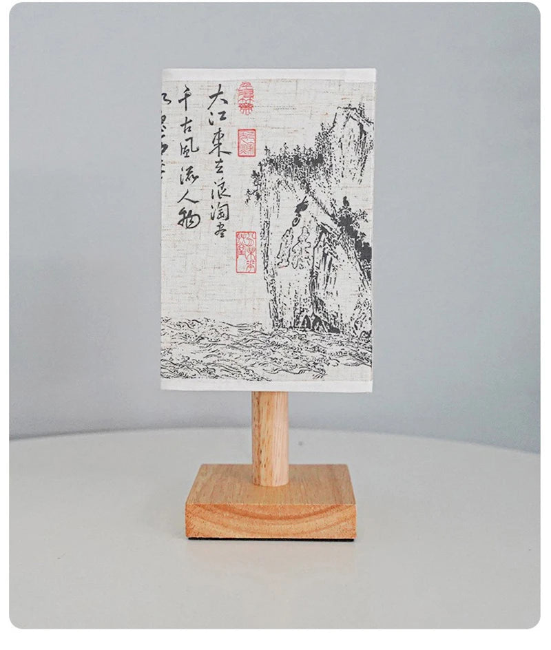 LED Square Decoration Table Lamps Simple Chinese Style Dimmable USB Plug Night Light Fabric Lampshade Bedroom Bedside Lights