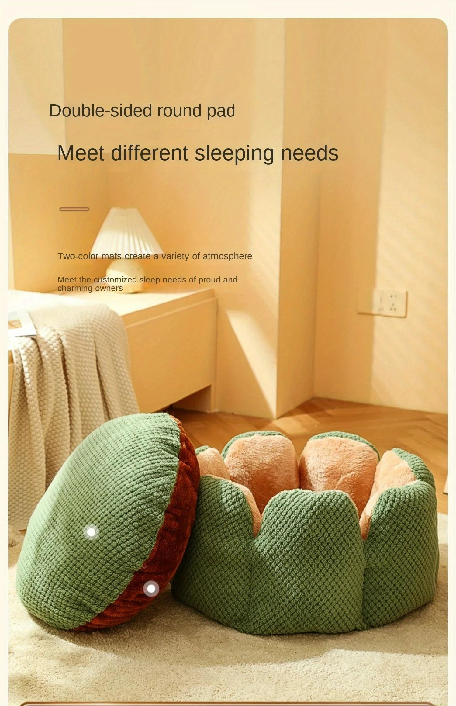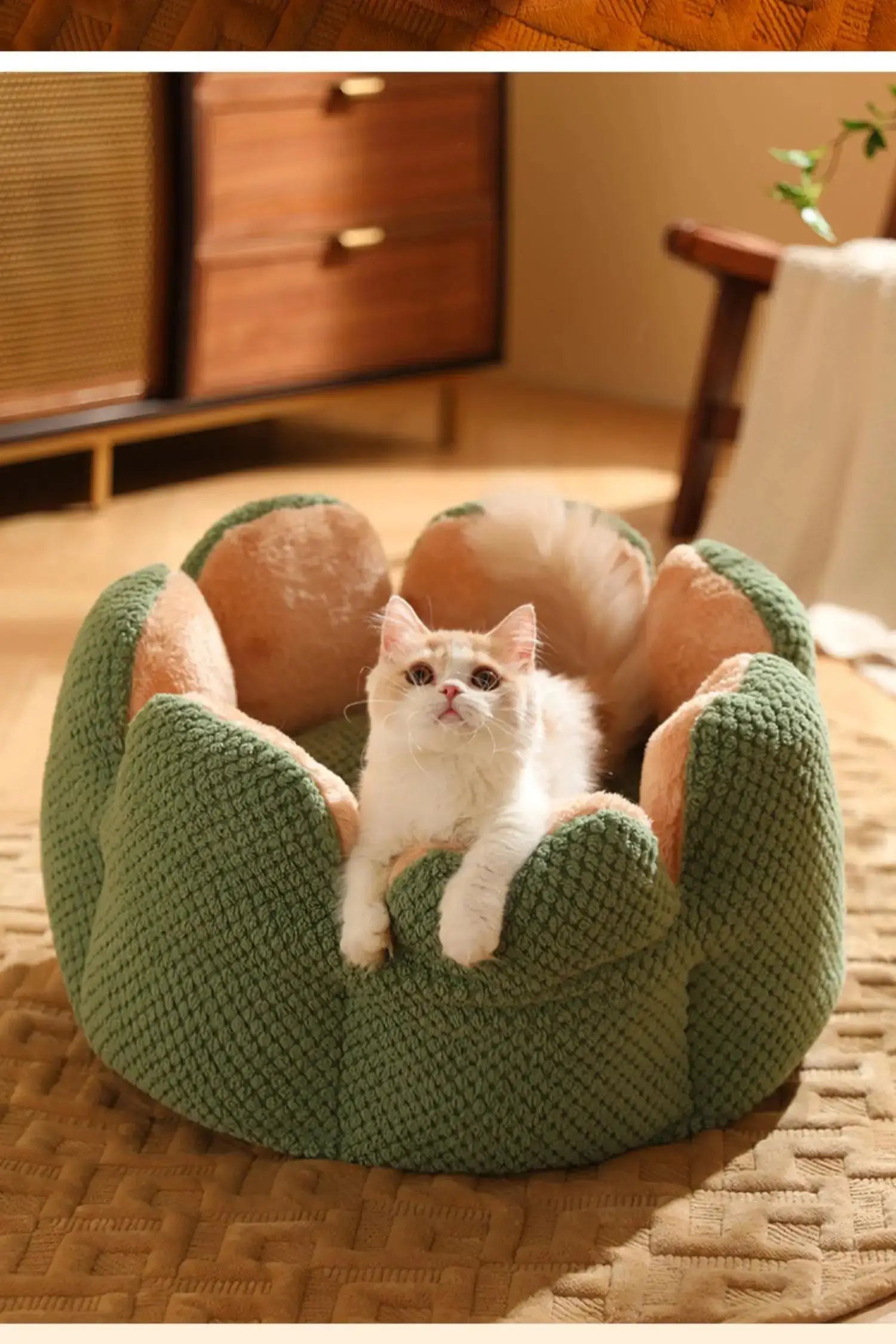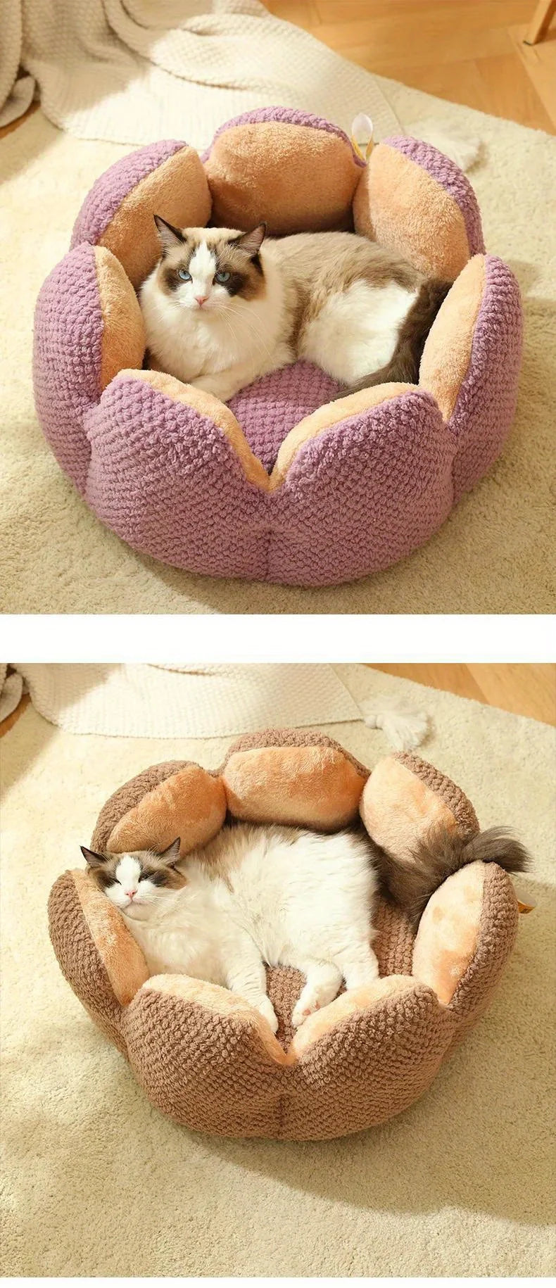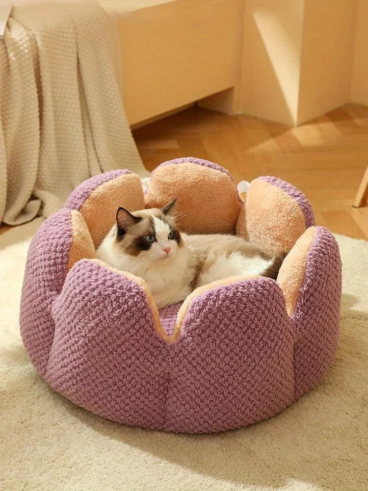 Petal Shaped Pet Bed, Plush Round Dog & Cat Cushion Mat with Knitted Texture, Ultra Soft Warm Nest for Kittens Puppies in Winter
