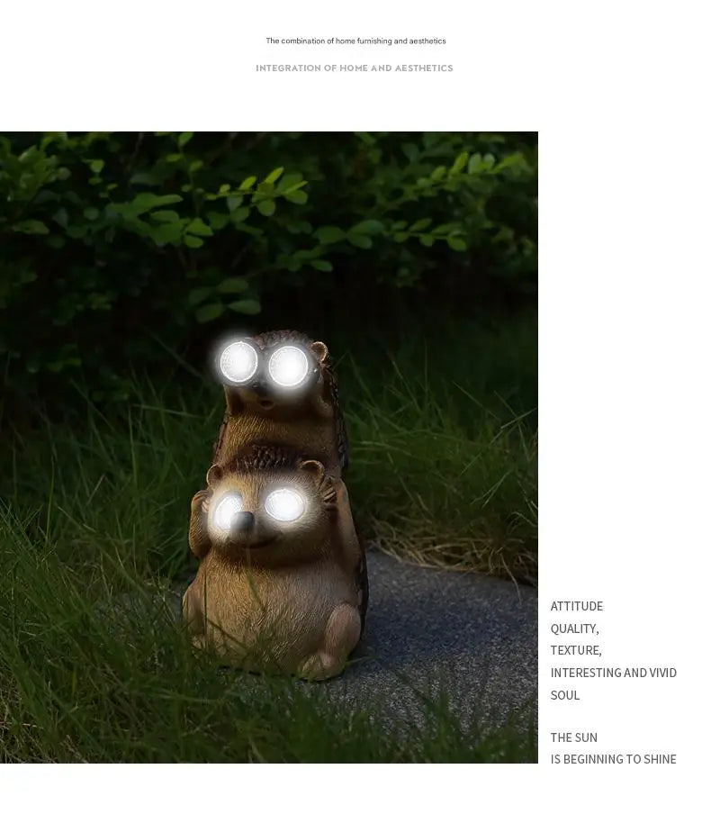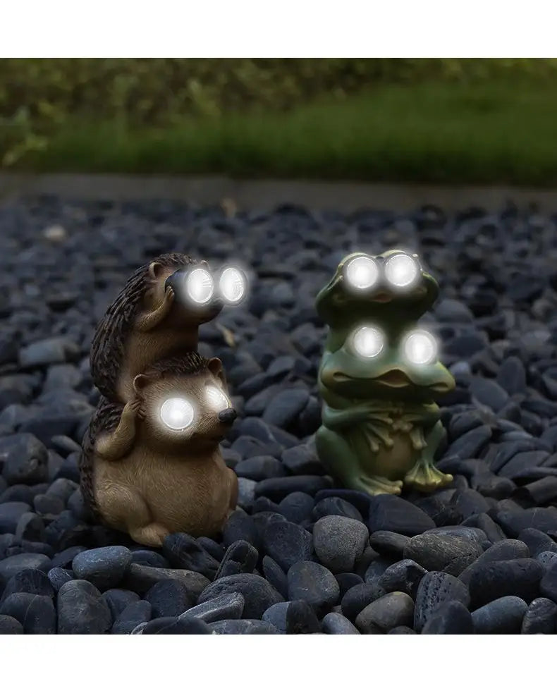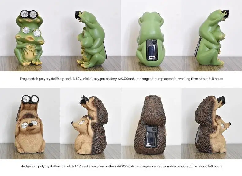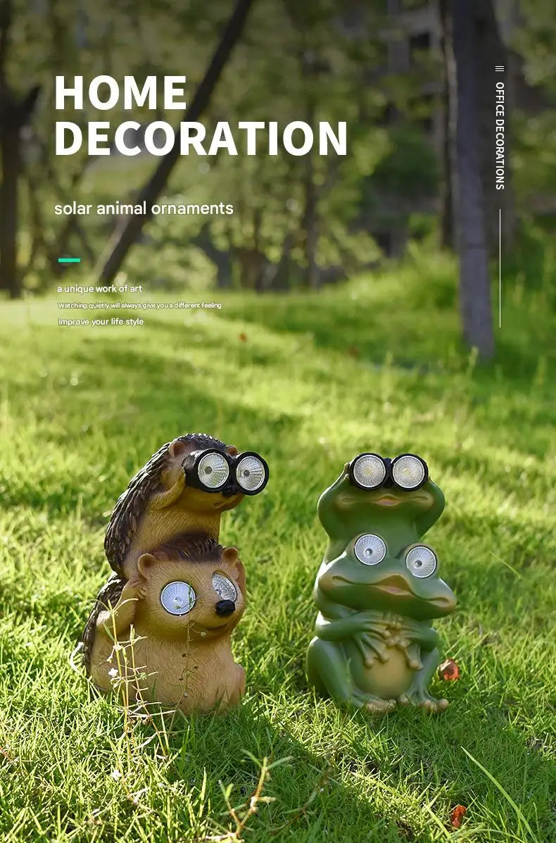 Resin Solar Animals Statue Sculpture Garden Decor Light Cute Ornaments Garden Art Decoration Outdoor Front Porch Patio Yard Home