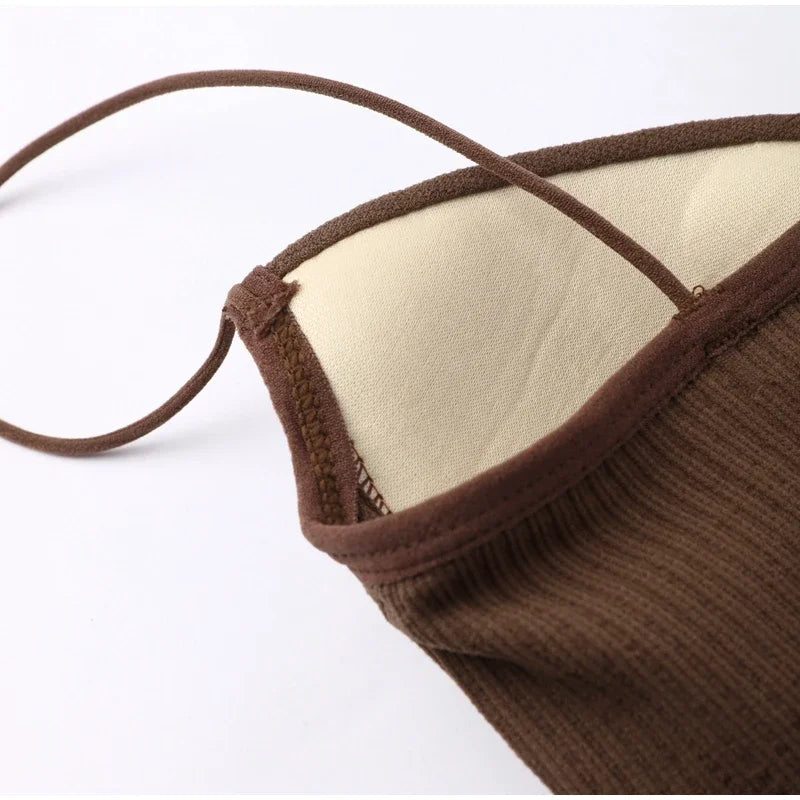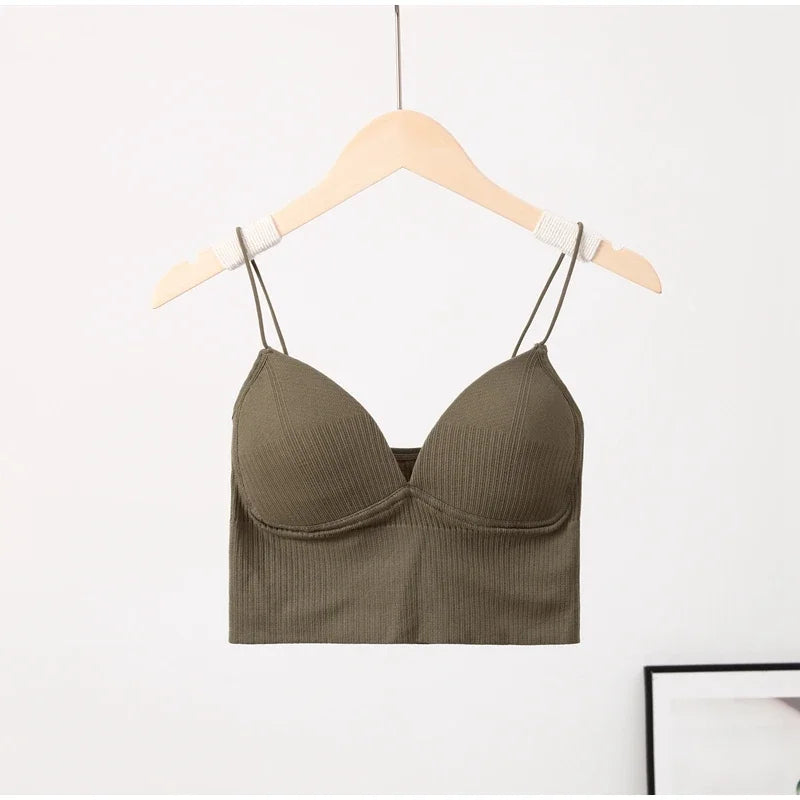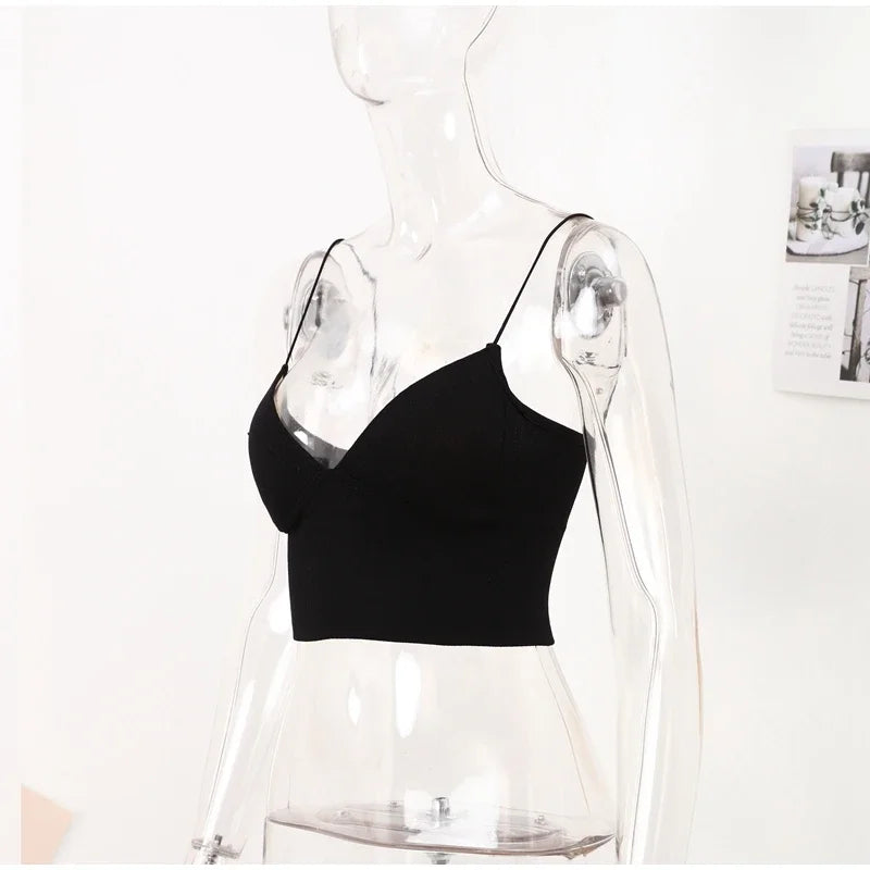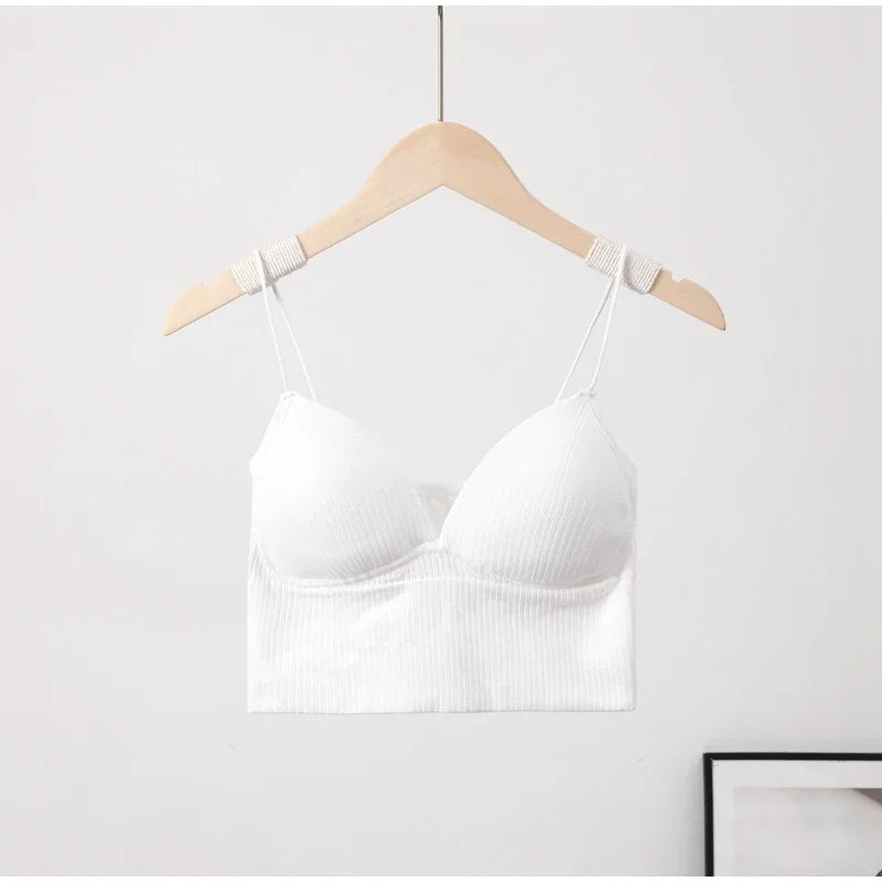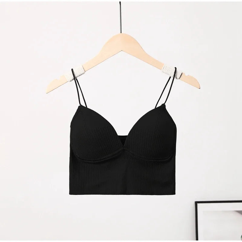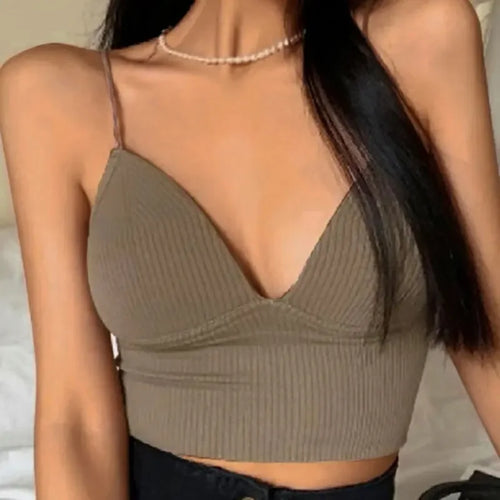 Rib Solid Women Seamless Crop Top Underwear Wire-Free V-Shaped Camisole Thin Straps Bra Bralette Lingerie One-Piece Tube Tops