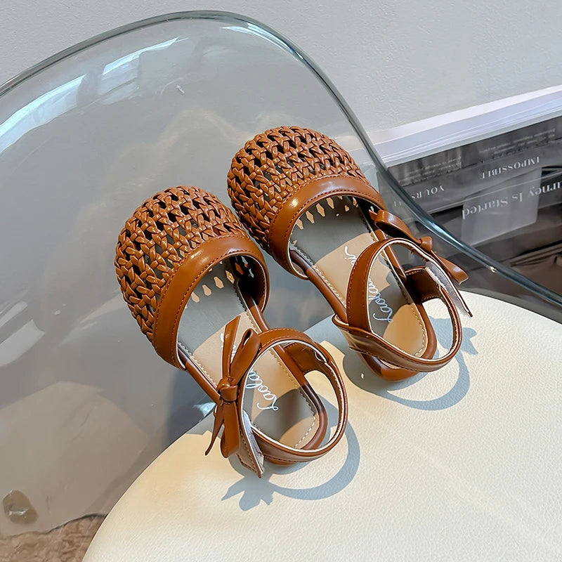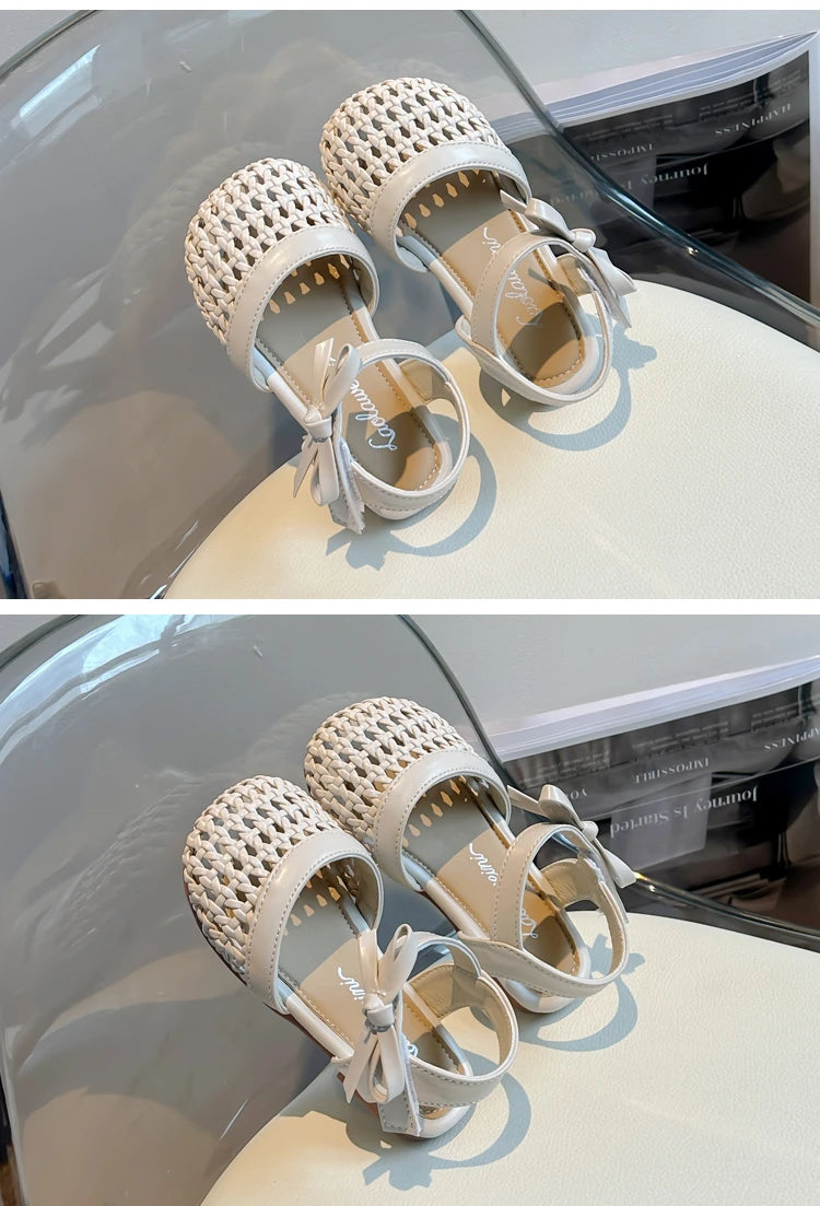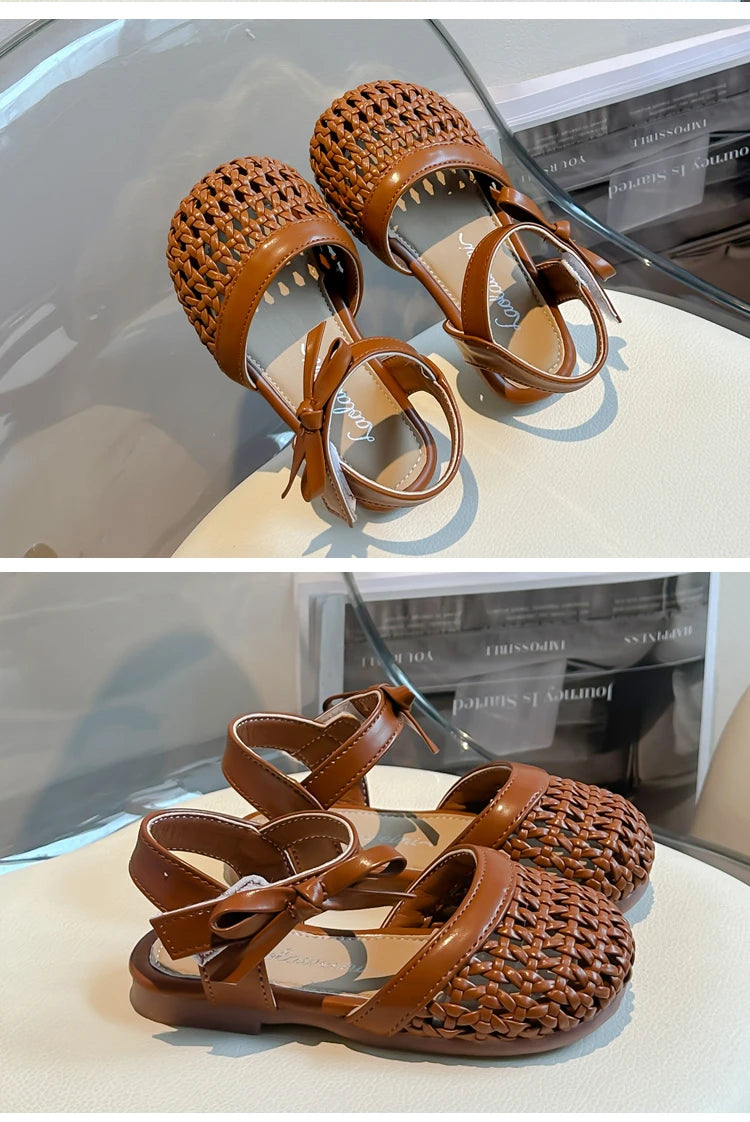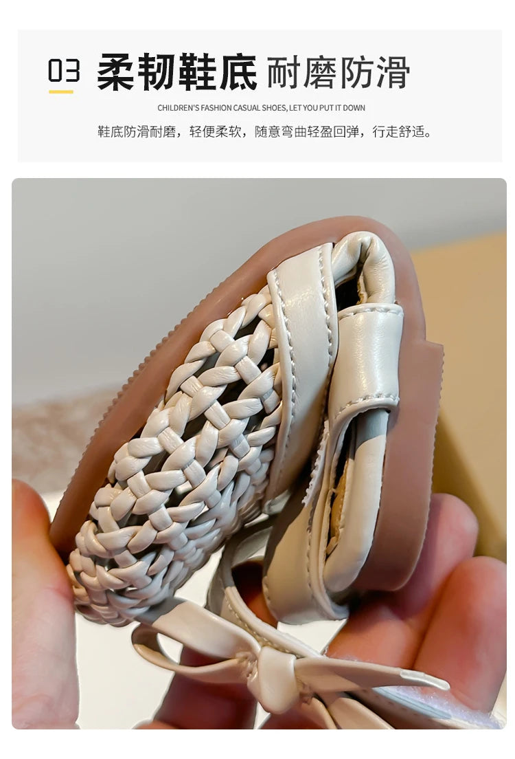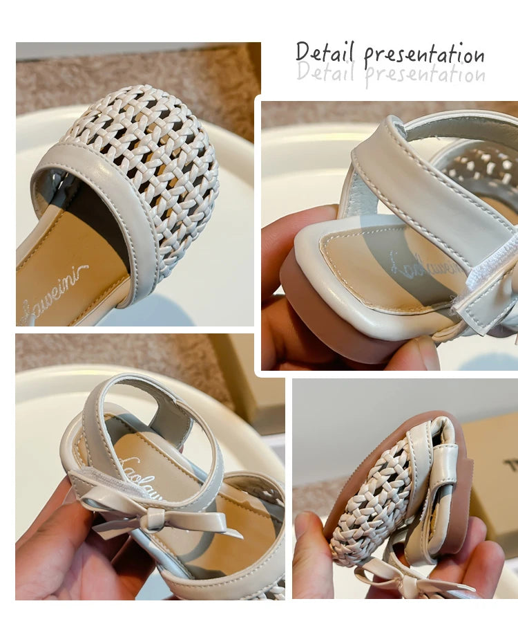 Sandálias Sandals for Girls Sweet Bowtie Baby Shoes Hollow Out Non-slip Sandals for Toddlers Children Soft Sole Kids Shoesصنادل