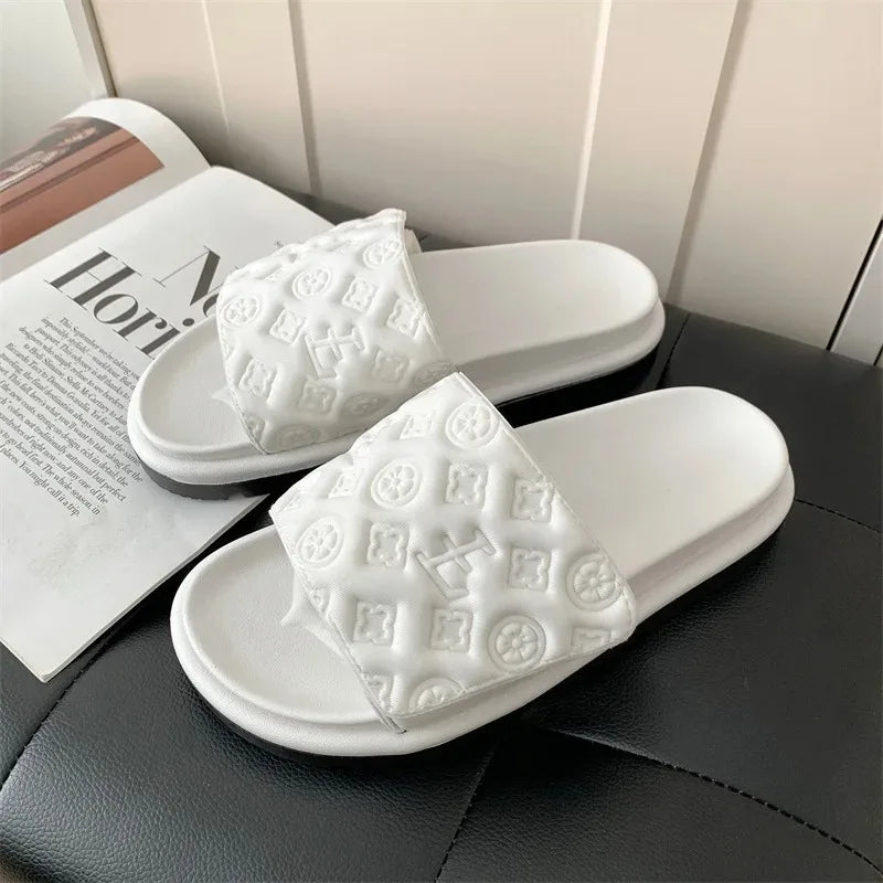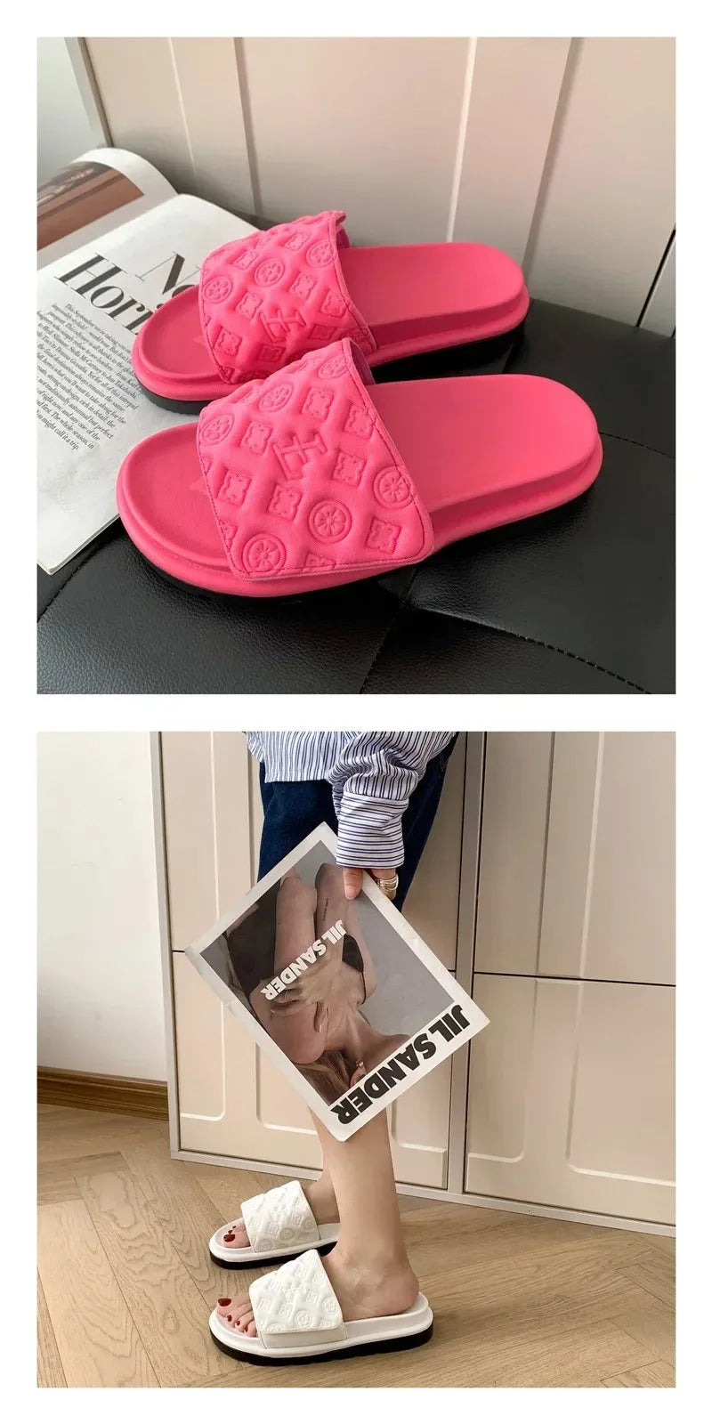 Senhoras adesivo mágico chinelos planos 2025 verão novo designer sandálias de luxo para mulheres elegantes casa chinelos planos