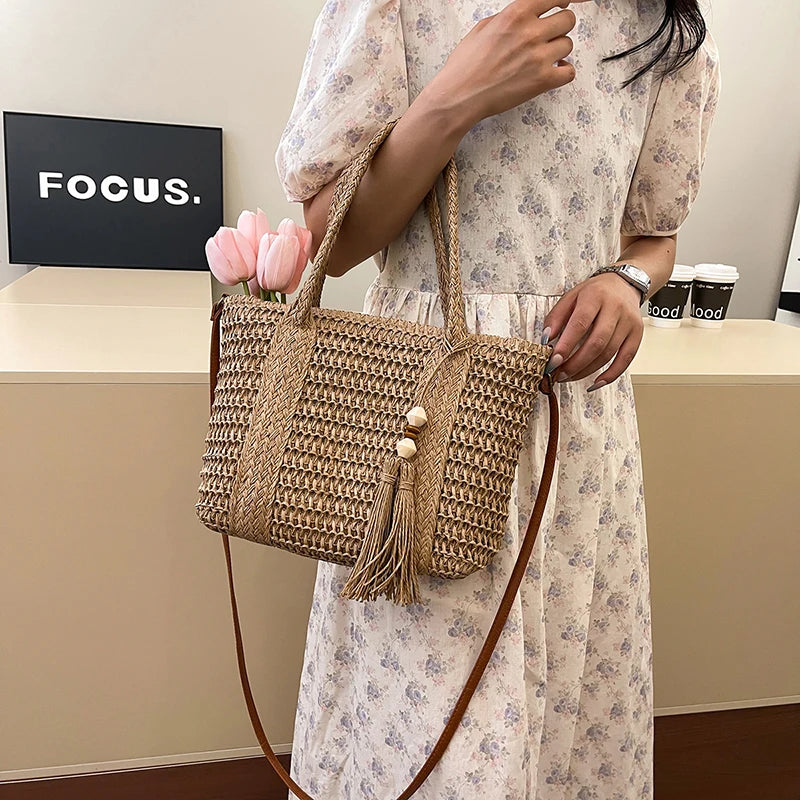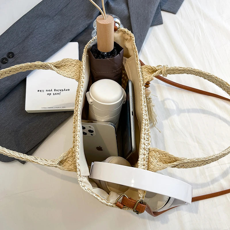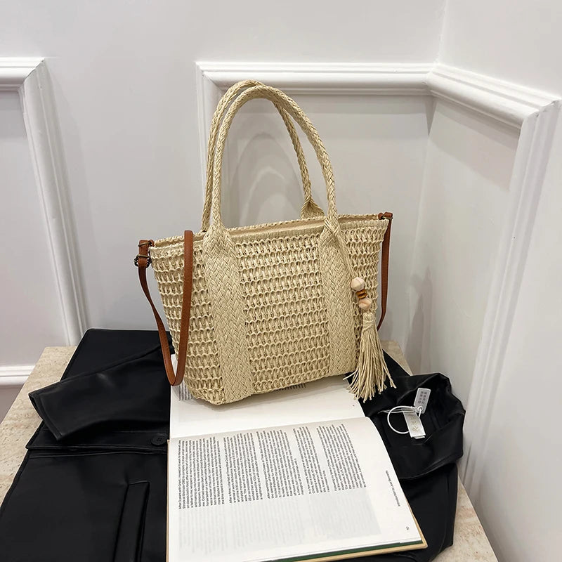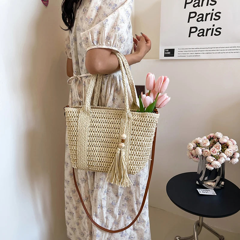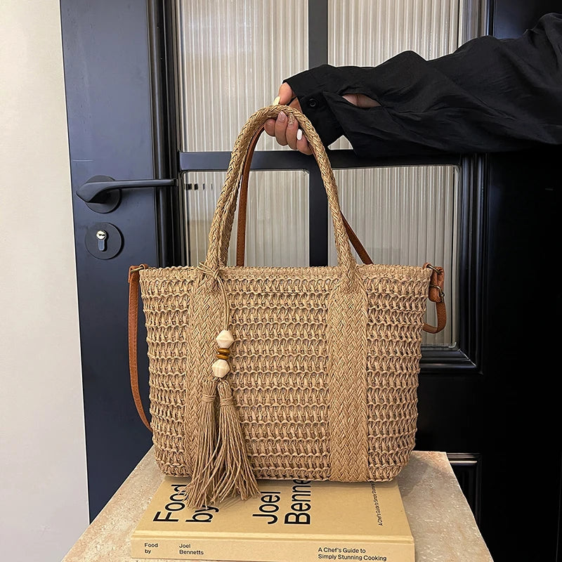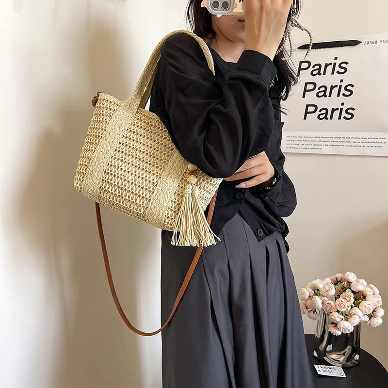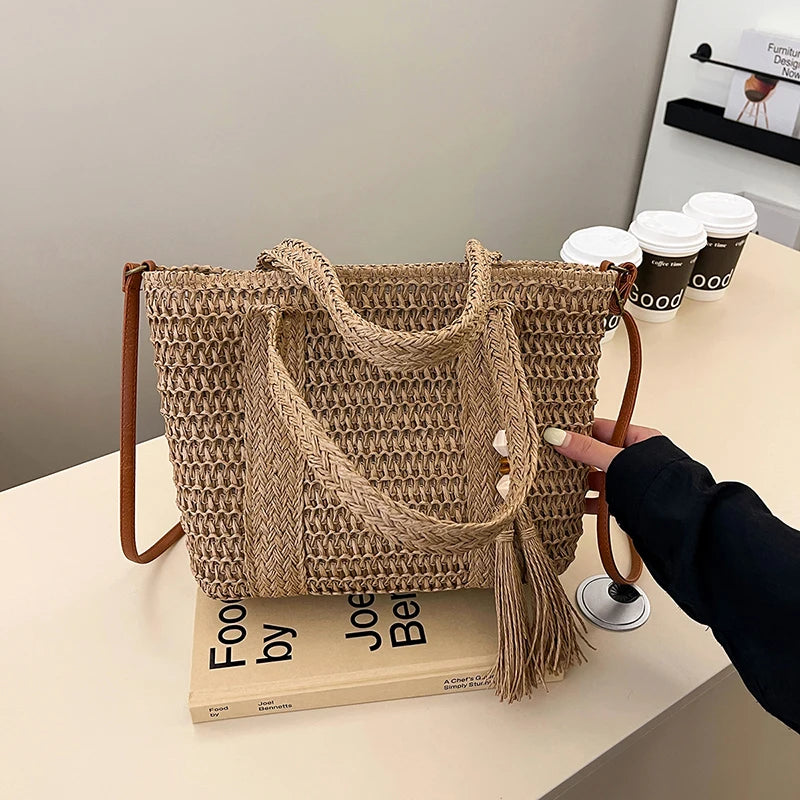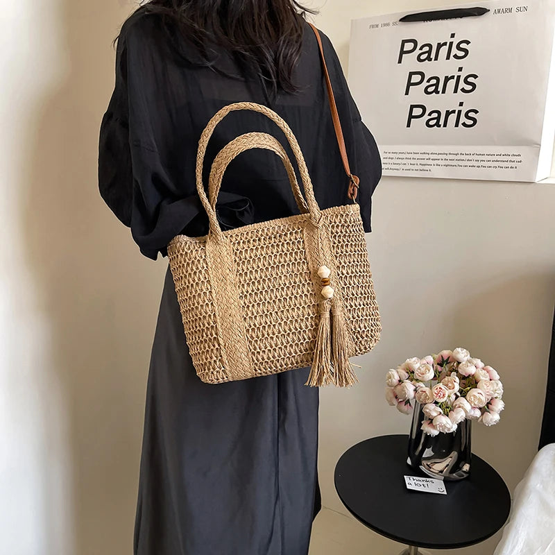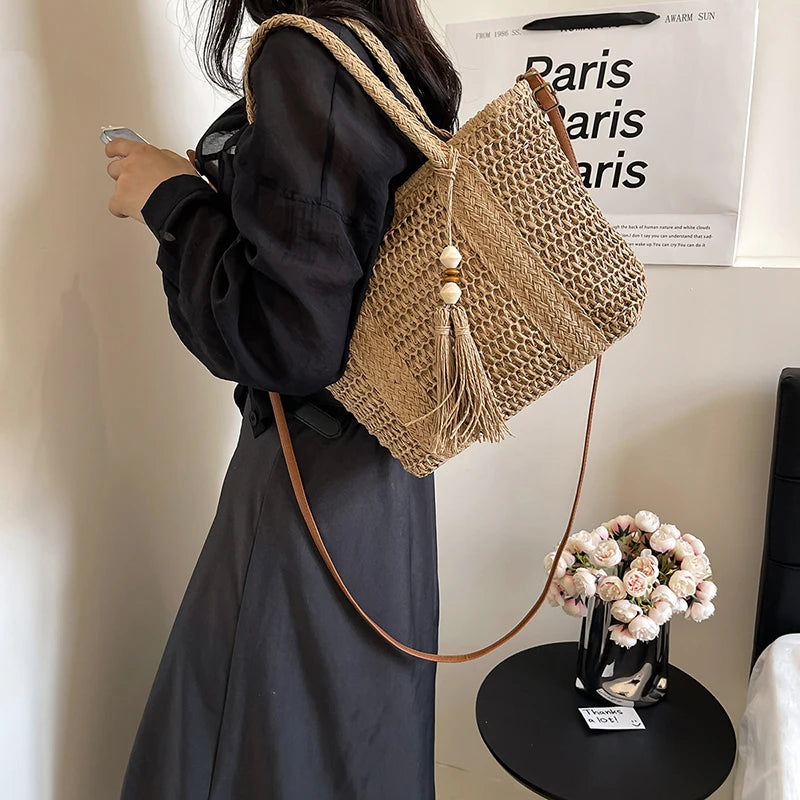 Summer Straw Bag Women Large Capacity Shoulder Messenger Bags Handmade Woven Handbag Bohemia Vacation Rattan Beach Purse 2024