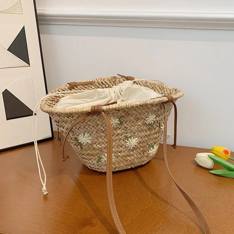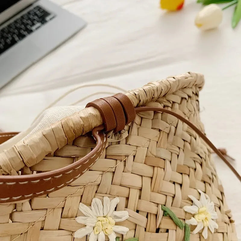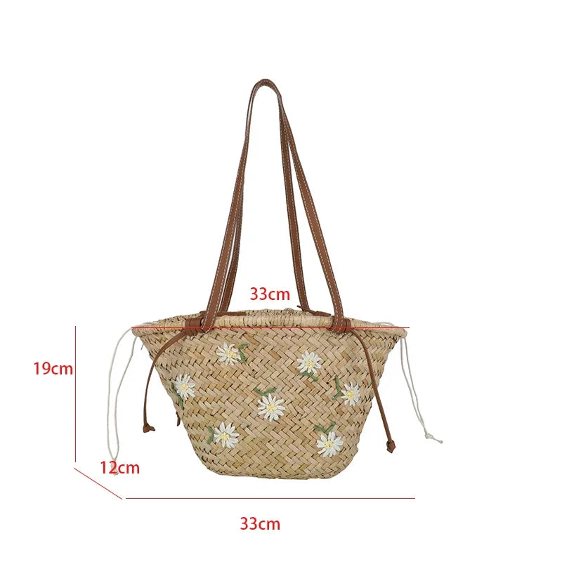 Summer Straw Handbag Boho Beach Shoulder Bag Woven Bucket Shopping Bag Handmade Rattan Bag Lady Top Handle Tote 2 set Handbag