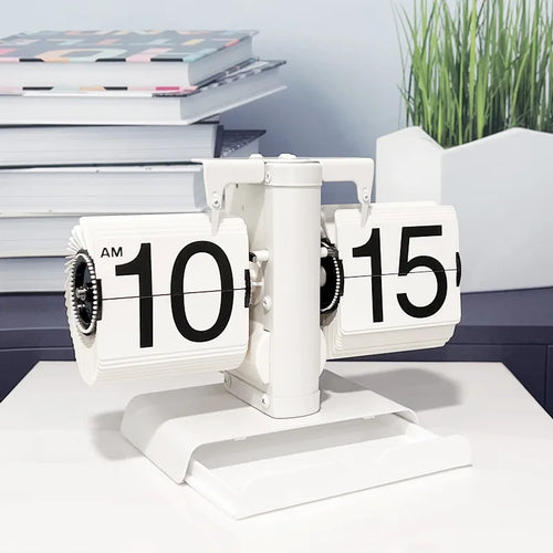 Table Clock Mechanical Automatic Page Turning Clock Retro Decoration Living Room Bedroom Office Desktop Decoration