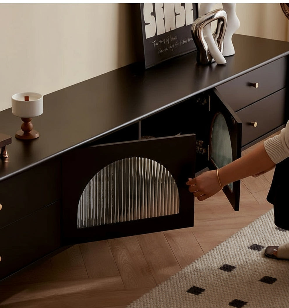Vintage Aesthetic TV Stand With Glossy Wood Living Room Furniture Accessories Stylish Modern Storage Solution Your Bedroom