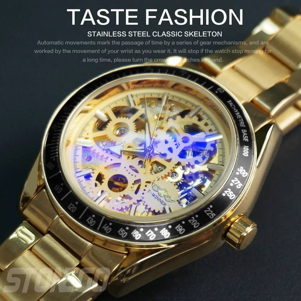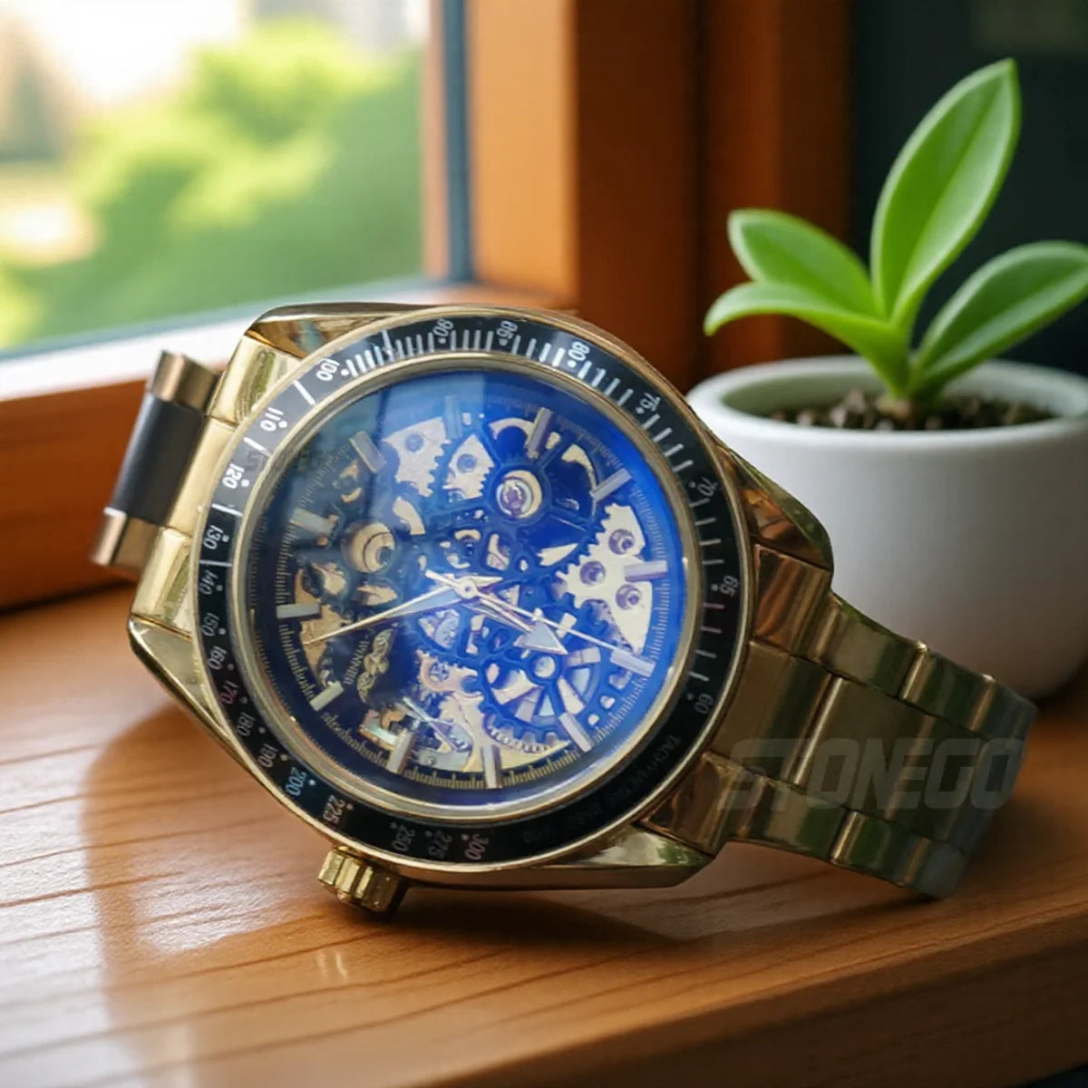 Women’s Automatic Mechanical Skeleton Watch Self-Winding Gold Plated Dress Watch Water Resistant Luxury Timepiece